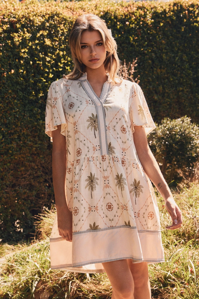 Neutral Tropical Baby Doll Dress