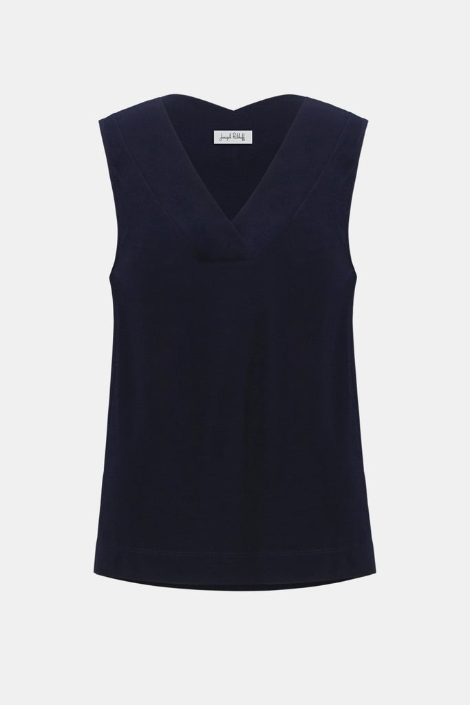 Dressed up or down, this charming top will elevate any ensemble. The sleeveless design is cut from a beautiful silky knit fabric that lends a smooth, comfortable feel all day long. The garment's straight and chic silhouette is enhanced by a bold V-shape neckline.